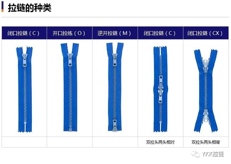 YKK拉链类别