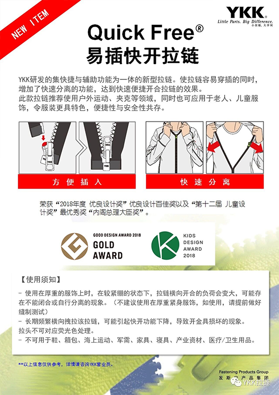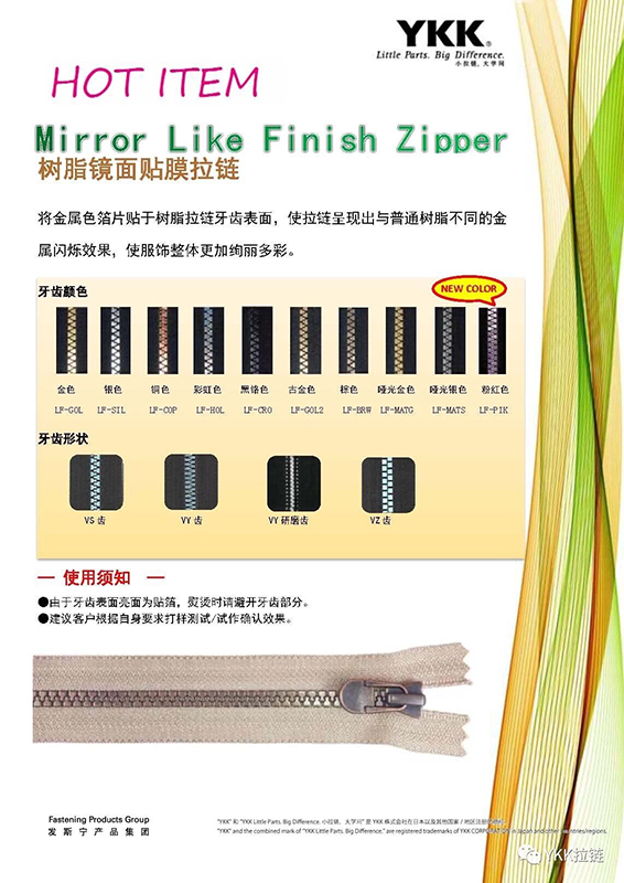 YKK拉链类别